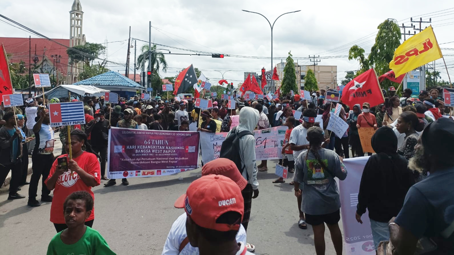 Paraparatv.id | Sorong | Aksi memperingati 64 Tahun Deklarasi Kemerdekaan Papua Barat kembali menggema di Kota Sorong pada Senin (1/12/2025). Massa dari berbagai kelompok usia berkumpul di sejumlah titik strategis yakni Ramayana Mall, Lampu Merah Km 10, Malanu Kios Anda (Arter), dan Jalan Baru (Jempur)—sebelum menggelar long march menuju pusat aksi di Lampu Merah Maranatha, tepat depan Studio Foto Elyn.