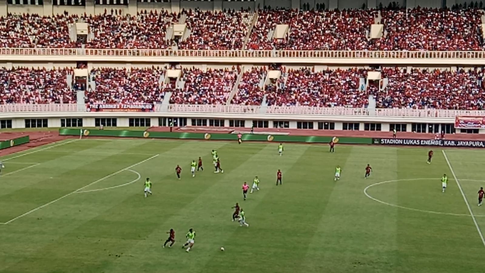 Laga antara Persipura Jayapura melawan PSS Sleman yang berlangsung di Stadion Lukas Enembe berkesudahan dengan skore imbang 1-1. (Nesta)