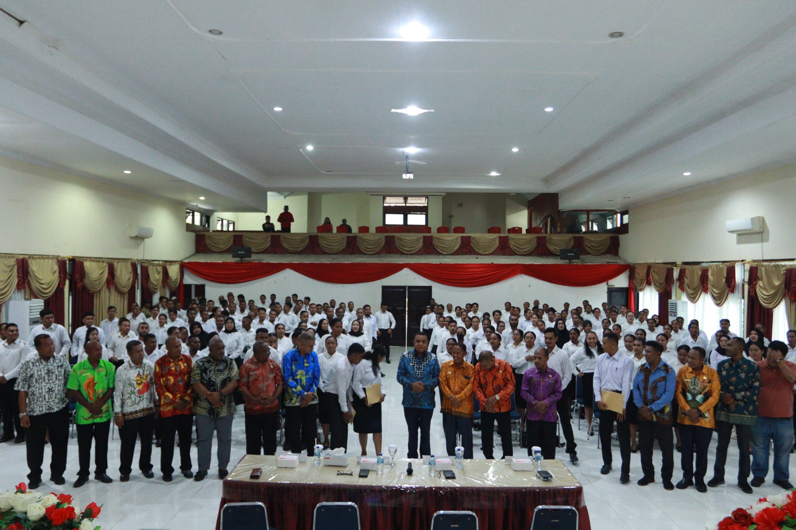 “saudara-saudari adalah putra-putri terbaik yang telah melalui proses seleksi yang ketat, transparan, dan akuntabel, pencapaian Ini patut disyukuri, namun sekaligus menjadi awal dari tanggung jawab besar sebagai Aparatur Negara”.tandas Bupati Yapen.