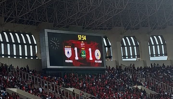 Persipura Jayapura tertinggal lebih dulu dari tamunya PSS Sleman dengan skore 0-1 dalam laga lanjutan kompetisi di waktu normal pertandingan. Gol tunggal tim tamu menjadi pembeda dalam duel yang berlangsung sengit sejak menit awal.