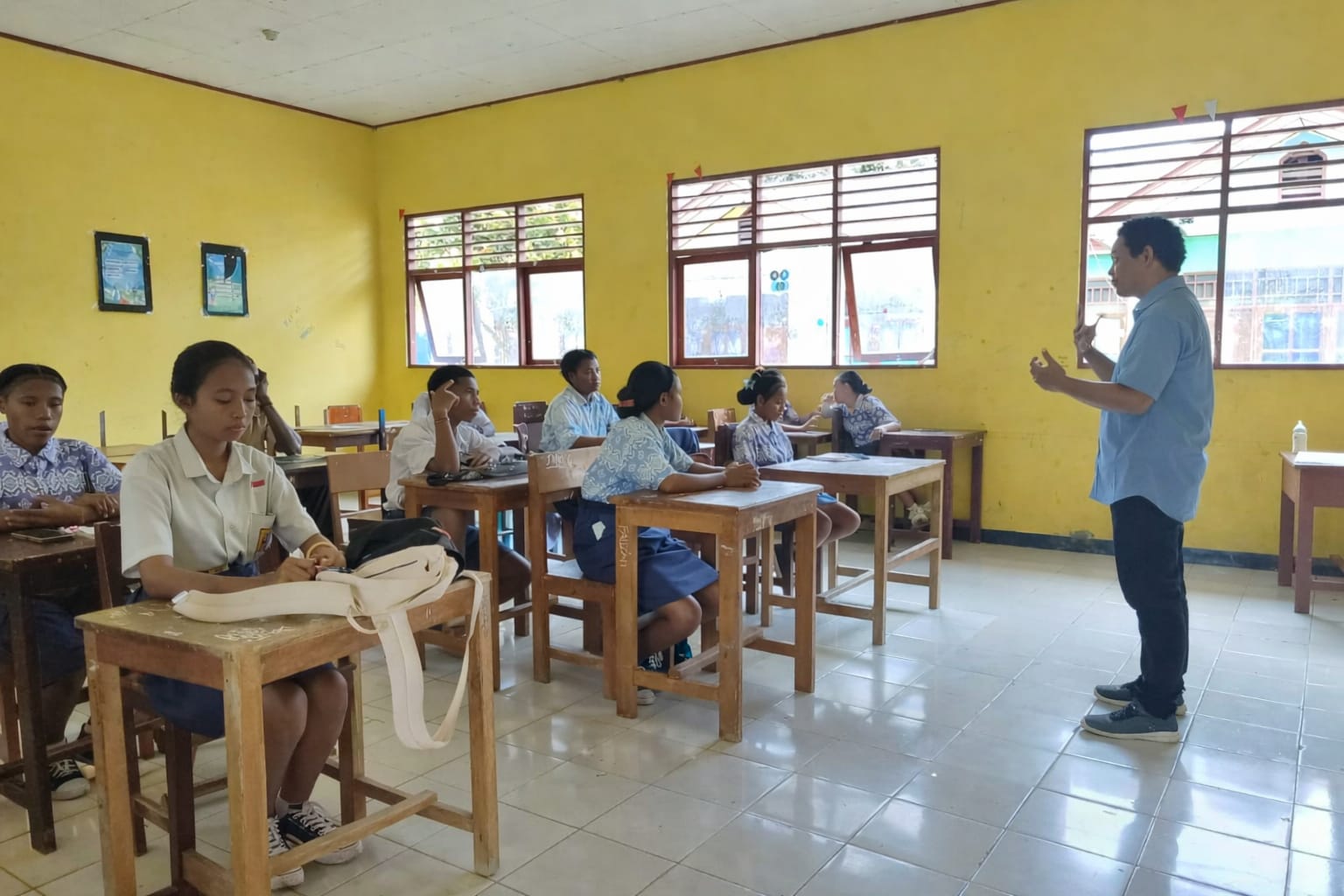 Paraparatv.id | Keerom | Emanuel Yarsy Burung, Guru Penggerak Eliminasi Malaria (PEM) SMP N 7 Pitewi, rutin menggelar diskusi kelas tentang malaria bersama para siswanya. Bukan sekadar ceramah, siswa didorong aktif bertanya dan berbagi pendapat agar terhindar dari penyakit malaria.